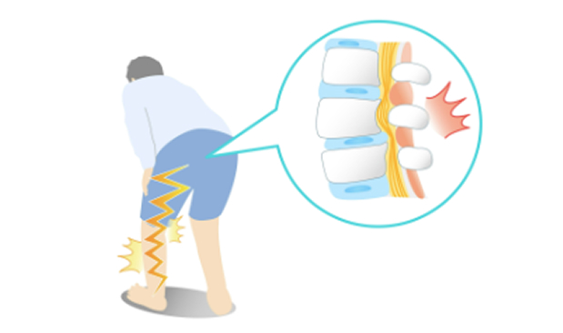 Najpogostejši razlog za izbočenje medvretenčne ploščice ali diska. Pojav ni tako redek, le marsikdo ne ve, da ga ima. Dokler izbočenje ne pritisne na živčna vlakna in to sproži simptom hernije, bolečino. Bolečina se najpogosteje pojavlja v ledvenem delu, kar nakazuje na manjše »stiskanje« živca. Večja hernija pomeni, da se bolečina širi po nogi navzdol. Lahko se pojavi tudi mravljinčenje in pri nekaterih zaznavne spremembe na koži (sprememba občutka na dotik) ali nepravilno delovanje mišic (pareza).